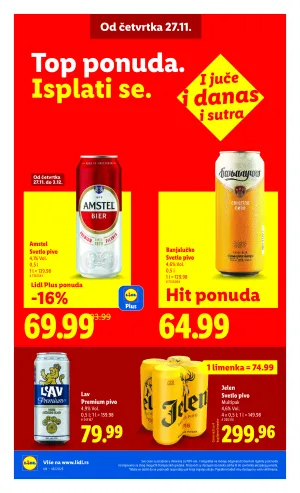 Ovde Vam prikazujemo kataloge i akcije sa amstel koji ste tražili kada ste kliknuli na stranicu sa proizvodima. Postoje ponude za amstel u više kataloga preciznije 1 stranica raznih kataloga i to: Lidl, a ukoliko Vam treba neki drugi proizvod osim amstel to možete naći već sa sledećim klikom na listu proizvoda.